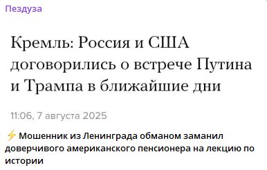 Якщо інформація про “мирні плани” Віткоффа з Ушаковим підтвердиться- з впевненістю можна буде стверджувати, що “ультиматум Трампа”, всі його погрози в адресу кремля, вимоги “припинити бойові дії до 8 серпня”- були лише черговим цирком від Трампа, грою на публіку, мовляв: “ось який я грізний і рішучий- самому Путіну ультиматуми ставлю…” А в останній день перед закінченням ультиматуму проходять чергові беззмістовні переговори, на яких кремль “погоджується на мир”, але на своїх умовах- і Трамп заявляє про свою “перемогу, рух у мирних переговорах”, що дозволить йому в черговий раз відкласти введення санкцій проти РФ- чого і слід було очікувати від популіста і фаната, прихильника Путіна, яким насправді являється Трамп.