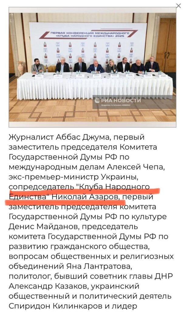 Російські нацисти, зрадники України, колаборанти, серед яких колишній премьєр-міністр України М. Азаров, в Москві створили “Клуб национального единства”, на якому обговорюють знищення української нації.