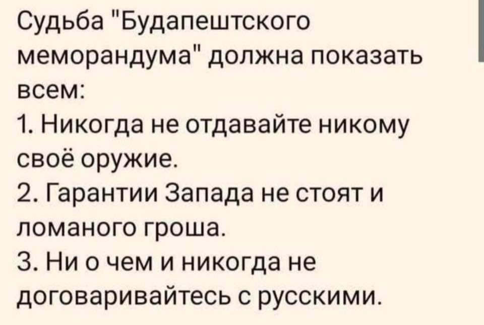 Администрация Трампа оправдывает свои действия тем, якобы ядерное оружие не принадлежало Украине, это было оружие РФ, которое оставалось на территории Украины и она его вернула РФ, а соответственно ни от чего не отказывалась и договор не действителен…